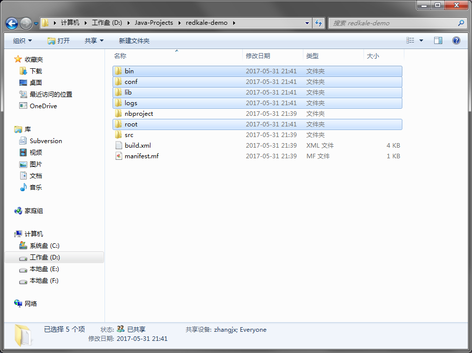 创建完空项目后,将 redkale-1.8.0.tar.gz 解压覆盖到项目的目录下。